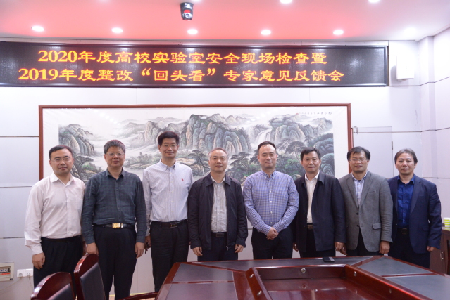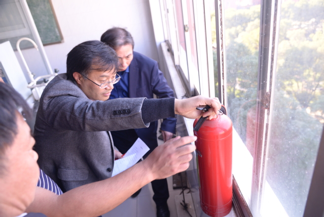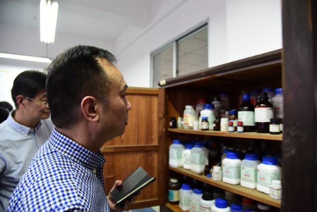 汇报会结束后,检查组分两组深入实验室,通过查看资料、重点检查和随机抽查等方式,对学校30多个实验室的安全管理体制机制建设与运行、实验室安全教育、危险源监管体系建设与运行、安全设施配置与保障体系建设、安全应急能力建设等进行了现场检查。