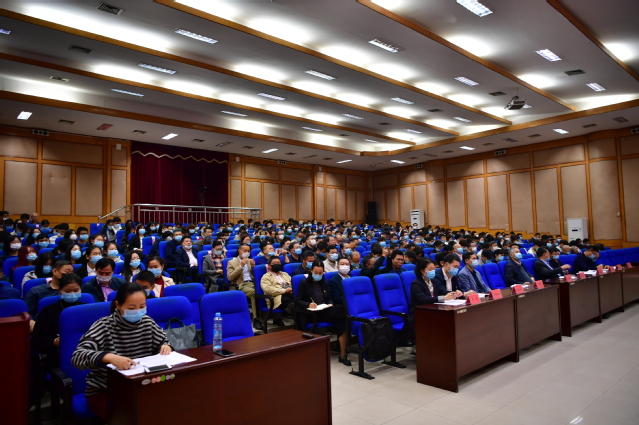 本站讯 11月18日,学习贯彻党的十九届五中全会精神省委宣讲团走进beat365官方网站,省委宣讲团成员、省委办公厅副主任徐建文作宣讲报告,为师生带来了一堂精彩的报告会。报告会由校党委书记李雪南主持。在家党政领导班子成员,副处以上干部,基层党支部书记和专职辅导员,各民主党派、统战团体负责人,离退休老干部代表,马克思主义学院教师代表,学生代表近400人聆听了报告。