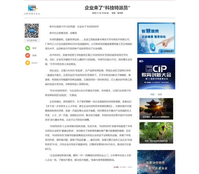 本站讯(科研处)近日,新华社刊登一篇《企业来了“科技特派员”》文章,对beat365官网王霏、丁永电、黄宸武等一批优秀企业特派员扎根企业、服务地方的典型事迹进行了宣传报道,获得良好社会反响和热议。