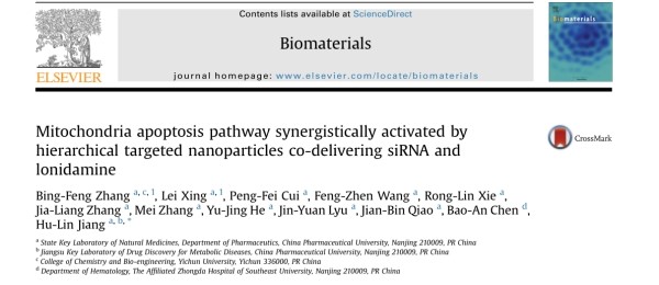 pathway synergistically activated by hierarchical targeted nanoparticles co-delivering siRNA and lonidamine》,发表在DOI:10.1016/j.Biomaterials.2015.05.027(影响因子:8.557,SCI生物材料1区)。