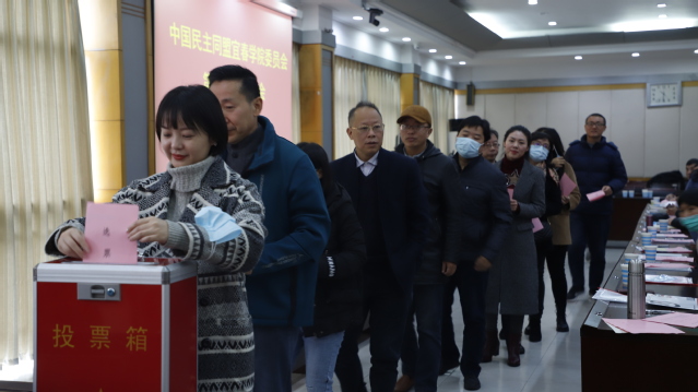 本站讯 11月27日上午,民盟beat365官方网站委员会在办公楼第三会议室召开盟员大会,选举产生第五届委员会领导班子,黄志刚当选为主委,晏渠如、虞琴当选为副主委。