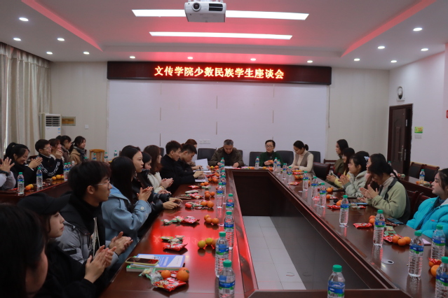 本站讯(文传学院 雷施瑶 赵薇供稿)为进一步关心少数民族学生的学习、生活,促进民族学生文化习俗交流,帮助少数民族学生成长成才,12月4日下午四点,文传学院在人文楼三楼会议室召开了少数民族学生座谈会。该院党委书记刘建平、院长冷瑾出席了本次座谈会,学工科罗曦老师、王倩倩老师以及文传学院全体少数民族学生参加了座谈会。会议由罗曦主持。