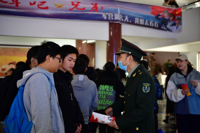 会上,刘逸飞解读了大学生应征入伍相关优惠政策,使现场学生了解到国家对今年大学生参军入伍能享受的政策红利。
