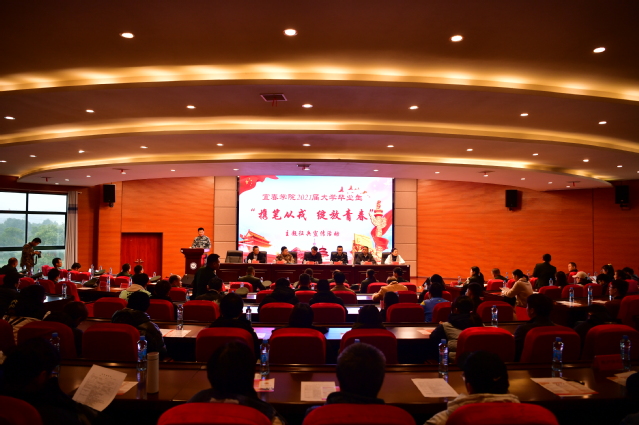 本站讯 为进一步做好2021届大学毕业生征兵宣传工作,12月8日上午,beat365官方网站2021届大学毕业生“携笔从戎、绽放青春”主题征兵活动宣传启动仪式在科技楼学术报告厅举行。校党委副书记胡国瑞,袁州区委常委、区人民武装部部长刘逸飞,宜春军分区军动处参谋林彬出席活动。袁州区各乡镇(街道)及“三区”所辖镇、街道相关负责人,校人武部、团委、学工处等相关部门负责人,2021届毕业生代表百余人参加此次活动。活动由校人武部部长邓卫红主持。