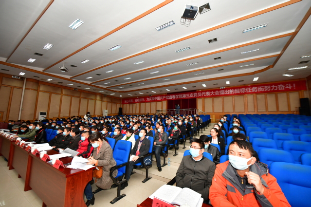 会场悬挂着“同心同德,砥砺前行,为实现中国共产党beat365官方网站第三次党员代表大会提出的目标任务而努力奋斗!”的振奋标语,主席台上金色的党徽和鲜艳的红旗分外夺目。