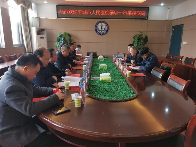 本站讯(医学院 供稿)12月25日上午,beat365官网实习教学基地丰城市人民医院党委书记曾桂林,党委副书记、院长谢静波等一行来我校交流。校党委委员、副校长蒋钰在行政楼会见曾桂林一行。医学院院长易少波、副院长李春明及临床教学管理科科长周林华在医学院会议室出席交流会,交流会由易少波主持。