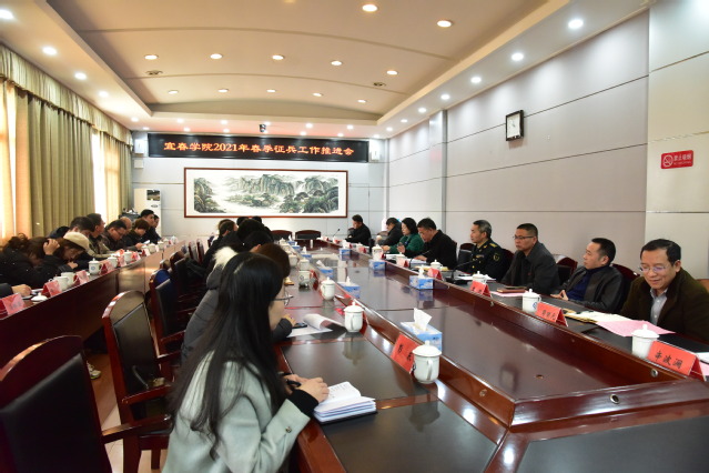 本站讯 (记者 晏亚芳)根据《关于组织开展2021届大学毕业生“携笔从戎、绽放青春”主题征兵宣传活动的通知》的要求,12月31日上午,beat365官网在办公楼第二会议室召开了2021年春季征兵工作推进会。校党委副书记胡国瑞,校党委委员、宣传部部长詹婷,袁州区武装部部长刘逸飞,学校相关部门及教学院负责人参加会议。