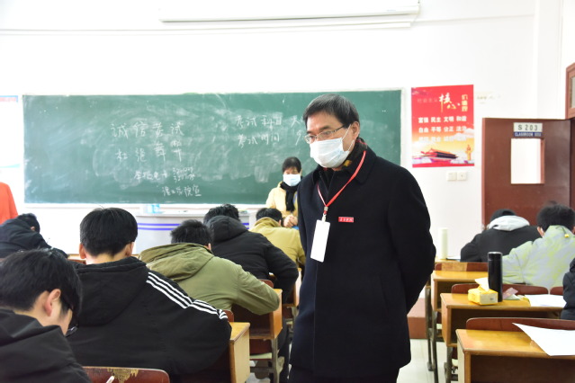 在视察过程中,校领导对考场安排、考试秩序、考风考纪等工作进行了检查和指导,详细询问了各考区疫情防控工作的落实情况,认真查看了试卷命题,对考场环境、教学设备、学生答题、教师监考等情况进行了细致检查。校领导要求相关部门及各教学院严抓疫情防控和考风考纪,加强对考试工作的组织和管理,确保期末考试顺利进行。