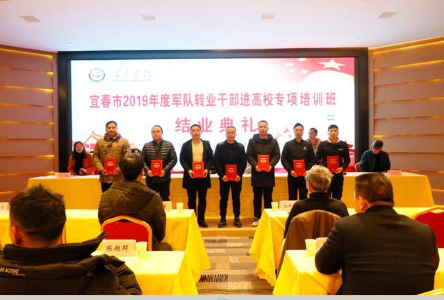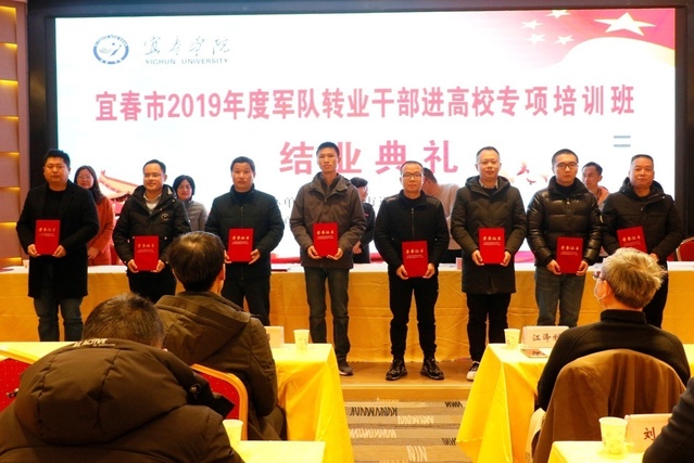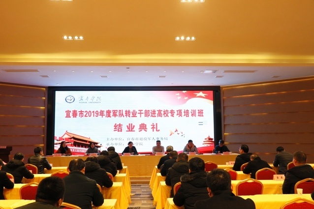 本站讯(继续教育学院 供稿)1月7日下午,宜春市2019年度军队转业干部进高校专项培训结业典礼在温汤工人疗养院第一会议室举行。学校党委委员、副校长余新卫、宜春市退役军人事务局副局长王安华、四级调研员付清林出席典礼,继续教育学院院长付文杰、副院长翁弟芳、副书记姜敏,教师代表等参加了结业典礼。典礼仪式由继续教育学院院长付文杰主持。