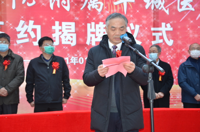 徐结强在致辞中对医院与学校的强强联手建立附属医院表示祝贺!强调附属医院建设与“健康丰城”发展战略相契合,将有力促进医疗教学与临床实践的紧密结合,是本地医疗资源提升自我、升级发展的良好机遇。寄语丰城市人民医院秉承“医德为先、能力为重、面向基层、服务大众”的培训宗旨,站在新起点、新高度,为丰城卫生健康事业培养更多优良的医疗人才。