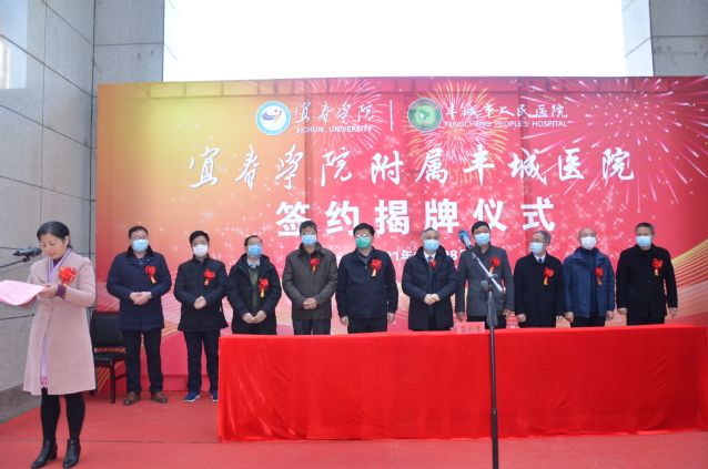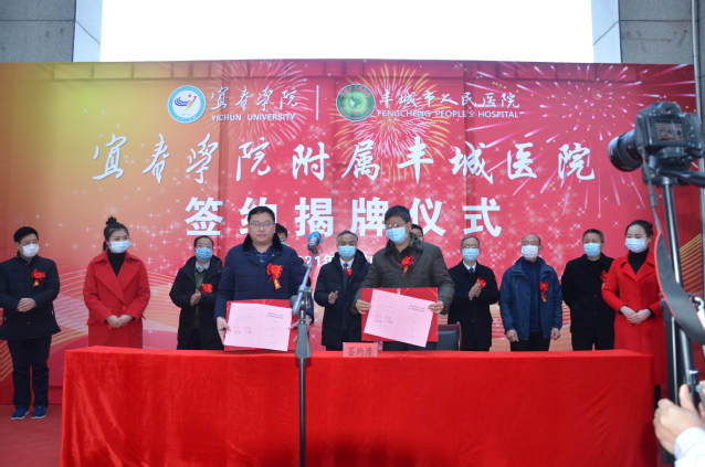 本站讯(医学院供稿)1月8日上午,beat365官方网站附属丰城医院揭牌仪式在丰城市人民医院举行。beat365官方网站党委副书记、校长曾晓春,党委委员、副校长邱家明,医学院院长易少波、教务处副处长周明元、医学院副院长李春明,丰城市市委书记李晓楚、市长徐结强、副市长陈冬珍,丰城市卫健委主任邹四清以及丰城市人民医院党委书记曾桂林、院长谢静波、医院中层干部代表等出席了仪式。邱家明副校长与谢静波院长签订协议书,校长曾晓春与丰城市委书记李晓楚共同为beat365官方网站附属丰城医院揭牌。签约揭牌仪式由副市长陈冬珍主持。