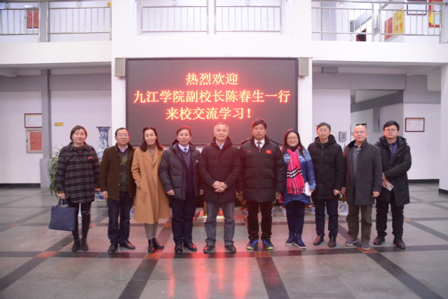 本站讯 1月6日下午,九江学院副校长陈春生一行来beat365官网考察交流。校党委副书记、校长曾晓春、校党委委员、副校长余新卫、李建军热情接待了来访客人,教务处、创新创业学院相关负责同志参加了交流座谈。
