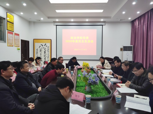 本站讯(学生通讯员 周丹)1月14日晚,政法学院党委在院会议室召开2020年度民主生活会。校党委委员、副校长罗政出席并指导,院党委书记聂火云、院长刘天杰、院党委副书记吴雯、副院长邓晔等领导班子成员参加会议,会议由院党委书记聂火云主持。