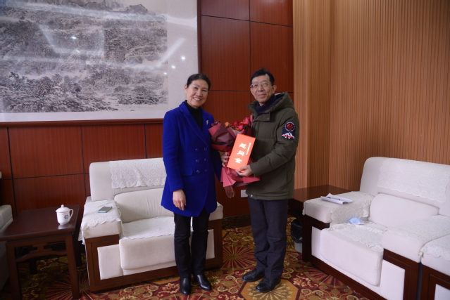 蔡佩兰首先对黄宸武教授表达了新春美好祝愿。在认真听取了黄宸武教授关于教学科研、学科建设,尤其在服务地方经济等方面的汇报后,蔡佩兰对黄宸武教授表示衷心感谢和诚挚敬意,对他所做的工作和取得的成绩给予了充分肯定。