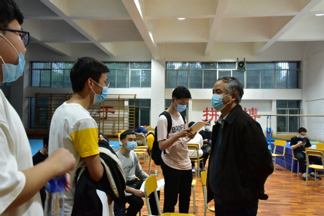 会后,校长曾晓春,党委委员、副校长余新卫来到学校体育馆临时接种点,检查新冠疫苗接种工作。