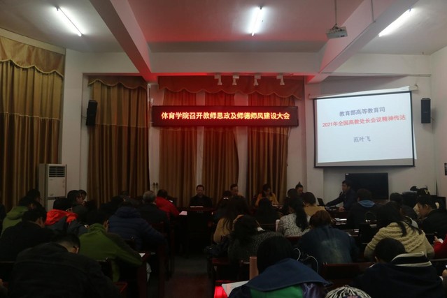 本站讯(体育学院 刘志权 李嘉欣 章燕萍 供稿)为深入学习贯彻习近平总书记关于教育的重要论述和教师队伍建设、师德师风建设重要指示要求,认真落实立德树人根本任务,4月7日下午,体育学院在体育馆会议室召开教师思政及师德师风建设大会。体育学院全体教师参加会议。