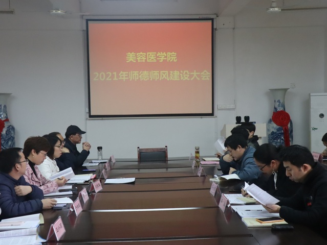 本站讯(美容医学院 供稿)4月14日下午,美容医学院在二教楼大会议室召开院2021年师德师风建设大会。该院全体教职工参加了此次会议,会议由院党委书记裘名宜主持。