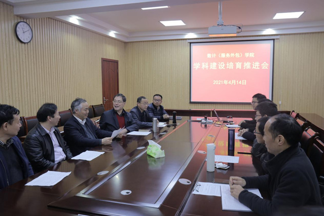 本站讯(数计学院 供稿)为进一步凝练教学改革成果,做好国家级教学成果奖培育工作,4月14日上午,数计(服务外包)学院在该院会议室召开国家级教学成果奖培育工作会议。校长曾晓春、副校长李建军出席会议,该院发展顾问谭光兴教授作国家级教学成果奖申报专题讲座,该院党委书记甘诚智、院长胡红武、副院长何渊仁、臧爱彬及团队成员、骨干教师参加了会议。会议由胡红武主持。