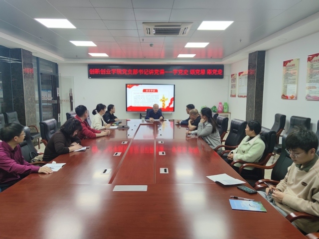 本站讯(创新创业学院 供稿)4月21日下午,创新创业学院党支部在众创空间党员活动室开展了题为“学党史、颂党恩、跟党走”的党课学习。党课由创新创业学院党支部书记刘新坤主讲,创新创业学院全体教职工参加了党课学习。
