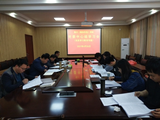 本站讯(数计学院 供稿)4月26日上午,数计(服务外包)学院在该院会议室召开党委理论中心组党史学习教育专题学习会,该院党委书记甘诚智、院长胡红武等院党委班子成员、党支部书记参加了学习会。会议由甘诚智主持。