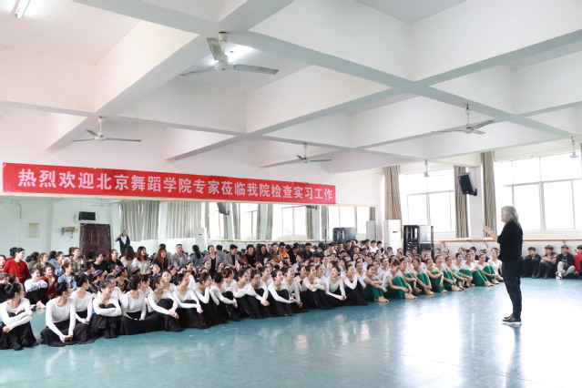 本站讯(学生记者 黄全金)4月28日上午,北京舞蹈学院学术委员会主任、民族舞蹈文化研究基地首席专家高度教授与中国民族民间舞系系主任张晓梅教授到音乐舞蹈学院检查指导实习工作,对实习学生教学质量进行考察并现场观看汇报。该院党政领导与全体舞蹈教研室教师一同观看。