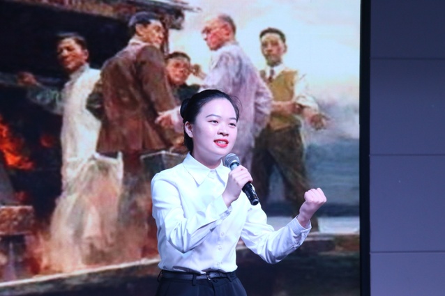 自4月初比赛拉开帷幕以来,各班级积极组织发动,共计100余名同学报名参加,经过初赛、复赛,共有8组选手成功进入决赛环节。参赛选手既有来自播音班的专业选手,也有来自其它专业的非专业选手。伴随着《唱支山歌给党听》悠扬醉人的旋律,比赛拉开了序幕。朗诵者们精神饱满、感情充沛,向观众展示了《永远跟党走》、《一条故乡的河》、《红船,从南湖起航》、《不朽》、《党的赞歌》等经典作品。充分抒发了文传学子对党、对祖国、对中国特色社会主义事业的崇高敬意和真挚热爱,深刻表达了青年不忘初心、勇于担当、砥砺前行的勇气与朝气。比赛最后,思进朗诵艺术团带来了致以祖国母亲的真挚问候——《为祖国而歌》,一曲昂扬的祖国欢歌结束,全场掌声雷动。