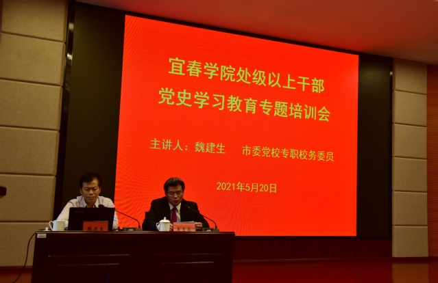 本站讯(记者 晏亚芳)5月20日上午,beat365官网在科技楼学术报告厅召开党委中心组政治理论学习(扩大)会暨处级以上干部党史学习教育专题培训会,特邀宜春市委党校专职校务委员、副教授魏建生做专题讲座。全体在家校领导、全校副处以上干部参加学习。会议由校党委书记李雪南主持。