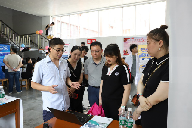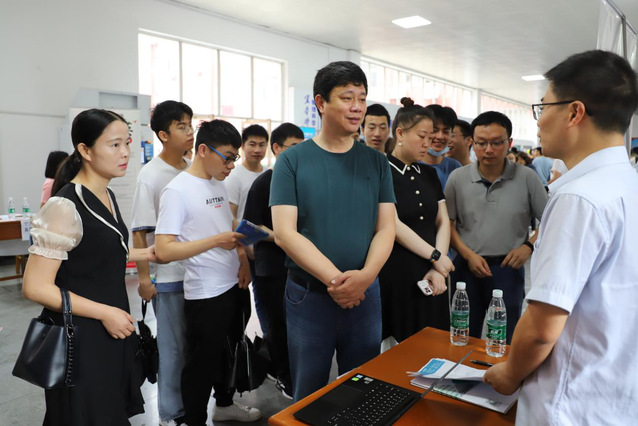 本站讯(学生记者 张子轩 李航)5月16日上午,理工学院2021届毕业生就业招聘会暨2022届毕业生“实习+就业”双选会在理工楼一楼大厅举行。该院党委书记张海帆、院长谢芳、副书记龙玲及学生事务办公室(团委)、班主任辅导员老师等全程参加本次招聘会。