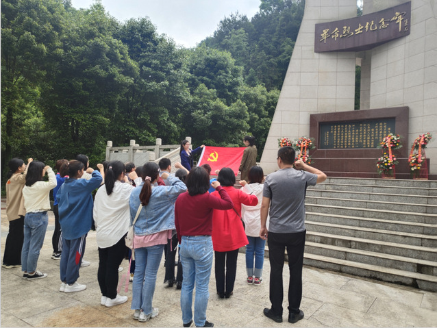 最后,来到湘鄂赣烈士陵园,党员们肃立在纪念碑前,向革命烈士默哀,表达对烈士们的无限追思和怀念。院党委书记裘名宜带领体党员,面向党旗,高举右手,重温入党誓词,不忘初心,牢记使命,不忘烈士遗志,永葆党员本色。