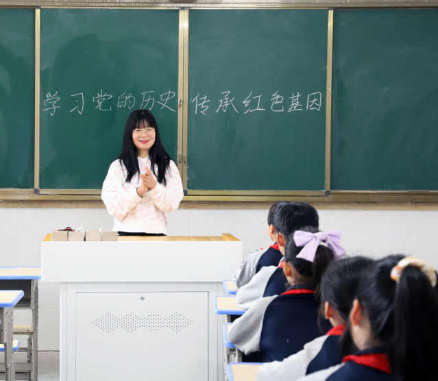 5月22日下午,团委学生代表杜伊婷、梁斌、李欣晨在团委老师刘臻彧的带领下,来到江丰小学六年级教室,为小朋友们讲述了“毛主席的拐杖情怀”、“十岁抗日小英雄郑振华”等党史故事,共同诵读红色家书《母爱封缄》,合唱《我和我的祖国》,让青年学生与孩子们共同感受爱国情感。