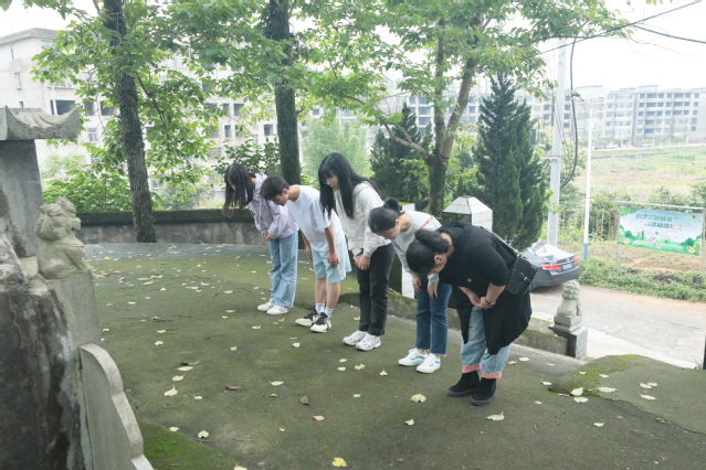 离开江丰小学,beat365官网师生代表来到江丰革命烈士公墓前,聆听了中国人民解放军十位烈士的事迹,鞠躬致敬,缅怀先烈。学生代表李欣晨说:“作为新时代青年,我们应将艰苦奋斗、无私奉献的革命精神融入到今后的学习生活中去。学好本领、积极向上,让青春在不懈奋斗中绽放绚丽之花。”