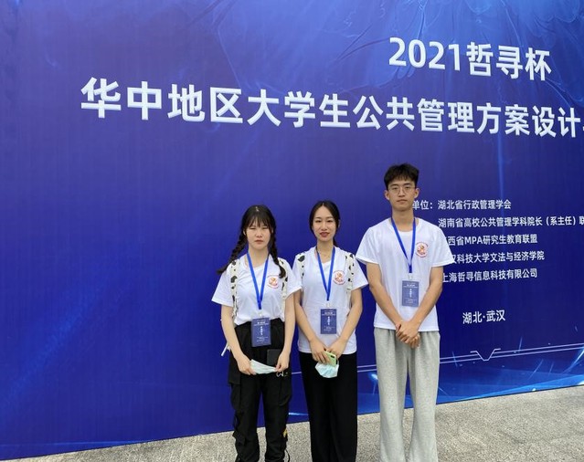 本站讯(政法学院 供稿)据悉,5月23日在湖北省武汉市武汉科技大学举行的第一届“哲寻杯”华中地区大学生公共管理方案设计与决策对抗大赛已经落下帷幕。在政法学院领导的高度重视和大力支持下,指导老师积极动员组织学生报名参赛,经过层层选拔,最终派出了一支由19级城市管理班许恒瑞、崔涵冰、程晓雨同学组成的队伍,队伍由刘天杰领队、何永刚指导。