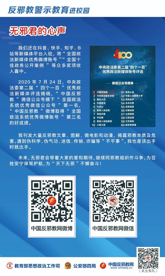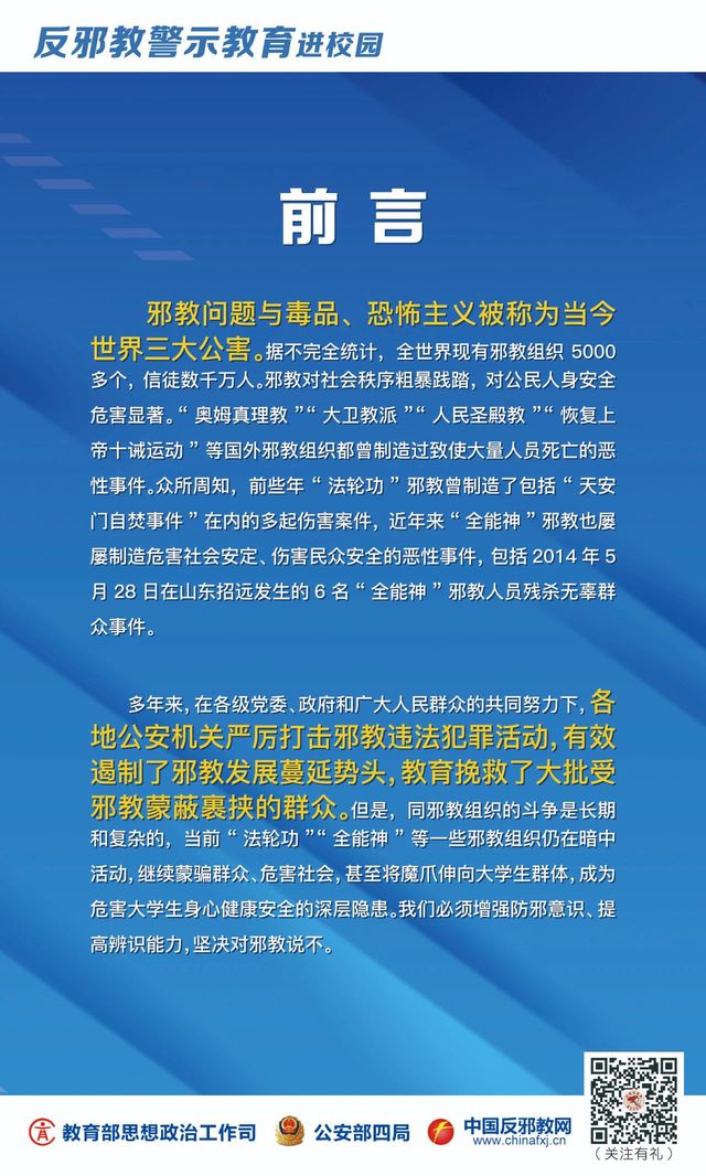 【学与做】反邪教警示教育进校园,对邪教说不!