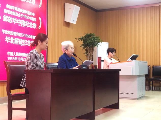 本站讯(学生记者 周宁)5月27日下午,美术与设计学院举办了一场特殊的党史教育课—听老党员讲革命故事。邀请到参加过解放战争、抗美援朝战争的90岁老党员陈岩奶奶,为该院师生讲述亲身经历的革命故事。出席本次党课的有美术与设计学院党委书记陈勇,党委副书记熊国新,专职组织委员易薇、办公室主任刘庚凯以及部分师生党员和入党积极分子80余人。