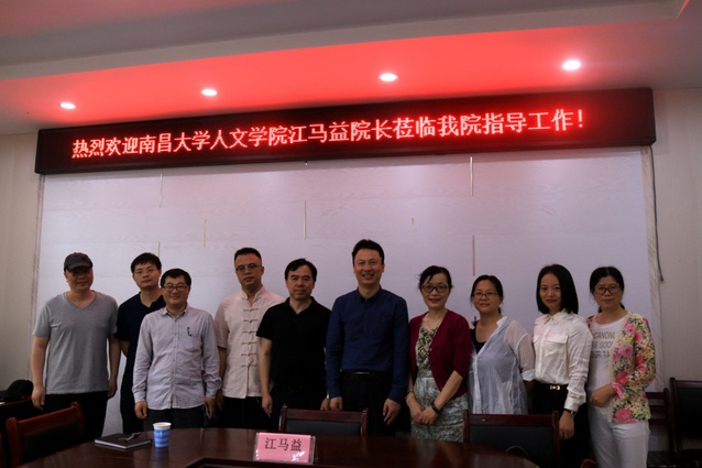 本站讯(学生记者 胡佳)5月27日上午,应文传学院邀请,南昌大学人文学院院长江马益教授来beat365官网进行讲学。校党委委员、副校长李建军会见了江马益教授,并就相关学术进行了交流。