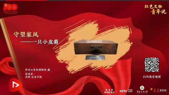 “这是一只小皮箱,它做工精致、轻便小巧......用了36颗图钉加以固定,却不显突兀,倒像身经百战后的累累功痕。当你俯身打量它时,皮面在灯光下依旧散发着淡淡的光泽,仿佛穿越时光续放着光彩......”高婷同学讲述的是收藏在井冈山革命博物馆第一展厅里的张子清烈士使用过的一只小皮箱的故事。这只小皮箱见证了张子清一家三代的奋斗年华,在三代青年的寻梦路上它装载了不仅有书籍物品,还有脉脉相传的红色家风。