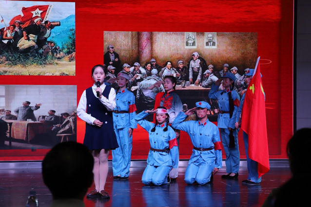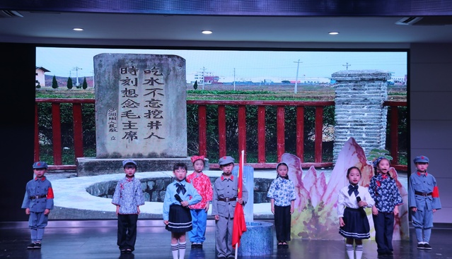 比赛中场,来自宜春市第三小学的一群少先队员为大家带来《吃水不忘挖井人》的节目,让在座的师生感受到红领巾们从小坚定听党话跟党走的决心。