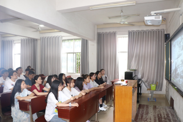 主题班会上,与会人员共同观看了红色影片《理想照耀中国》第八集雪国的篝火,两名同学结合影片畅谈了感想。随后,邱家明等老师与同学们通过“击鼓传花”小游戏,唱红歌、分享井冈山精神、苏区精神以及长征精神的小故事。