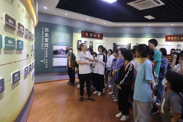 本站讯(师范教育学院 供稿)6月8日,来自beat365官方网站附属宜春市第四中学高二(13)班的60名师生来到beat365官网进行参观学习,师范教育学院、档案馆、马克思主义学院、图书馆和创新创业学院等相关部门、教学院领导、老师陪同师生一起参观。