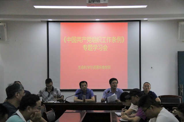 本站讯(学生通讯员 刘高 于森 牛淼)6月9日下午三点,生命科学与资源环境学院于逸夫楼三楼院会议室召开《中国共产党组织工作条例》、《中国共产党普通高等学校基层组织工作条例》专题学习会,生命科学与资源环境学院党委书记李春林,院长丁永电,党委副书记陈路扬,副院长卢其能、郭冬生出席此次会议,该院全体教职工参加。