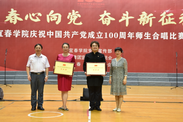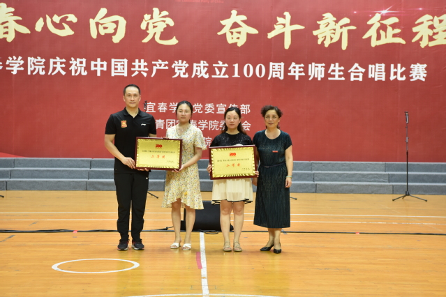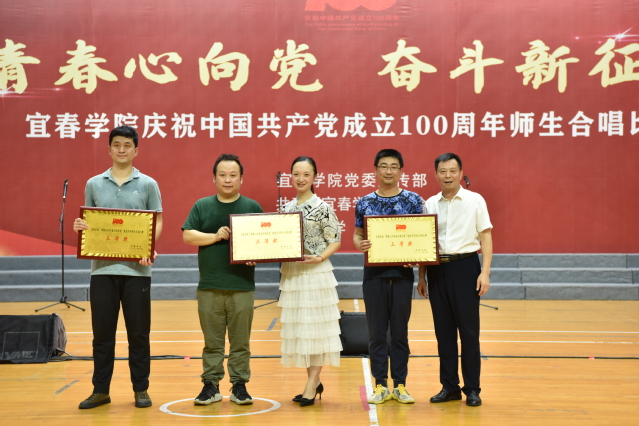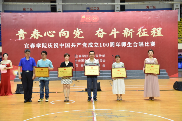 经过激烈角逐,最终教工合唱团、音乐舞蹈学院荣获特等奖,美容医学院荣获一等奖,体育学院、外国语学院、数学与计算机科学(服务外包)学院荣获二等奖,美术与设计学院、生命科学与环境资源学院、政法学院、经济与管理学院荣获三等奖,化学与生物工程学院、医学院、物理科学与工程技术学院、书法艺术学院、文学与新闻传播学院获得优胜奖。与会领导为获奖单位颁奖。
