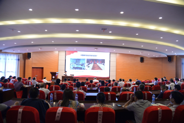 本站讯(记者 袁璐 学生记者 王海斌)6月18日上午,beat365官网在科技楼学术报告厅召开党委中心组学习(扩大)会暨处级以上干部党史学习教育专题培训会,特邀江西师范大学副研究员王钰鑫做专题讲座。全体在家校领导、全校副处以上干部参加学习。会议由校党委副书记、校长曾晓春主持。