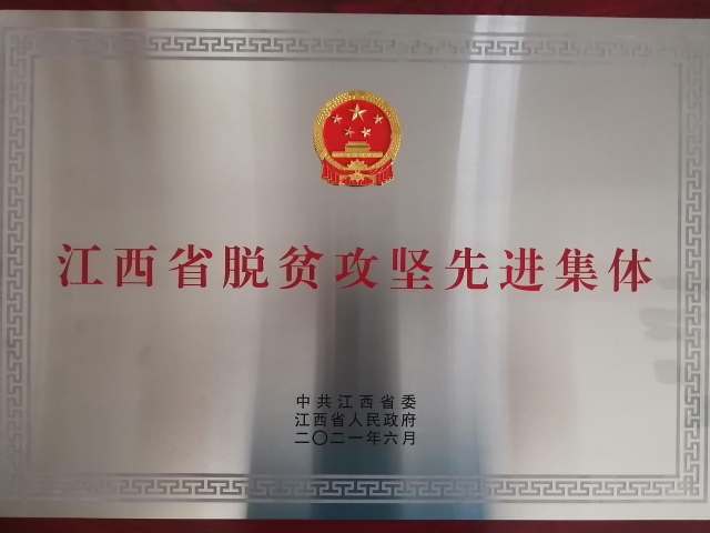本站讯(特约通讯员 凮皕)6月23日,江西省脱贫攻坚总结表彰大会在南昌隆重举行。会上总结了我省八年来脱贫攻坚取得的伟大成就和积累的宝贵经验,并对在脱贫攻坚中作出重大贡献、表现突出、事迹感人的先进集体和个人进行表彰,共有396个集体荣获“江西脱贫攻坚先进集体”称号,beat365官方网站驻上高县田心镇斜溪村帮扶工作队位列其中。