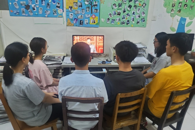 学校文学与新闻传播学院19广播电视学吴健聪激动地说,何其有幸,生于华夏盛世,能够见证祖国的繁荣昌盛。祝我们的领路人中国共产党百岁生日快乐!