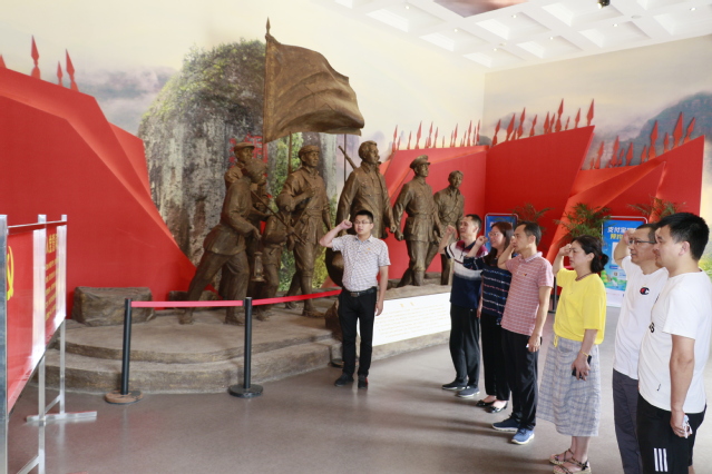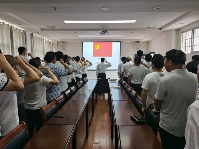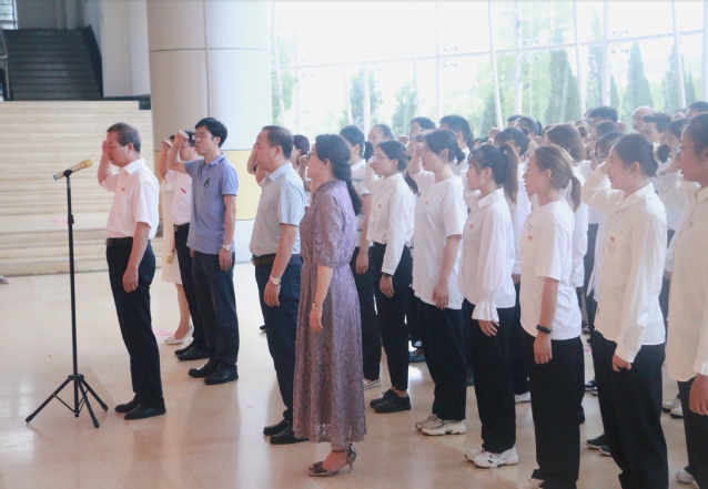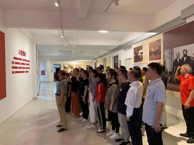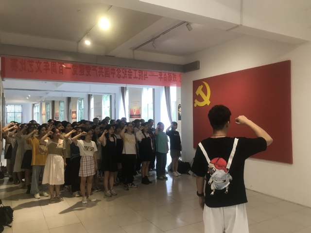 本站讯 (记者 何 杰)7月1日上午,文学与新闻传播学院在校内红色文化基地举行了新党员入党宣誓,八十多名新党员代表面向党旗进行庄严宣誓。