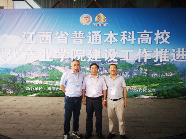 本站讯 (教务处 供稿)6月28日,江西省本科高校现代产业学院建设推进会在鹰潭召开,会议由江西理工大学、江西铜业集团承办,全省50多所本科高校代表参加会议,beat365官网副校长李建军率领beat365官网发展规划处、教务处相关人员出席活动。