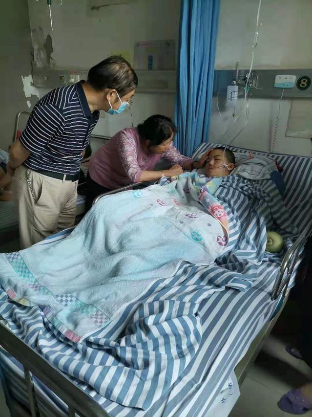 “病魔无情,人间有爱”。政法学院一直密切关注着刘树萍的病情发展状态,给这个家庭送去关怀和温暖。6月24日,政法学院党委书记聂火云、政法学院19级辅导员赵振宇以及19知识产权班班级代表前往中国人民解放军联勤保障部队第九0八医院看望刘树萍。病房中,刘树萍仍然处于昏迷状态,聂火云细心询问刘树萍现在的身体状况。在刘树萍妈妈的讲述中了解到,刘树萍现在病情稍有恢复,整体身体健康状况却仍然不容乐观,日常饮食依靠管道输入,右侧身体勉强能够活动,眼睛勉强能够睁开,左侧身体却仍处在瘫痪中。聂火云看着病床上的刘树萍心中五味杂陈。他也叮嘱道要时刻关注刘树萍病情变化,学院也会尽自己所能,利用各种有效渠道帮助这个被病魔缠身的家庭。随后,聂火云代表我院将义卖所筹得的12470元资金捐助给刘树萍以进一步进行病情治疗。
