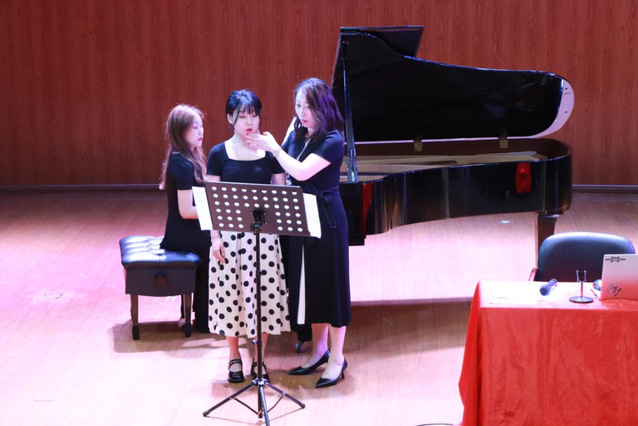 讲座中,万丹教授凭借深厚扎实的声乐功底和对艺术的独特见解,并结合自身的学习经历和丰富的歌唱经验与我院师生分享声乐歌唱技巧。现场,她对三位现场演唱的师生进行歌唱细节的指导,并分享贝尔贡齐等歌手的经典歌曲,让该院师生更加深刻地理解歌唱的“技、艺”,赢得师生的阵阵掌声。讲座结束后,该院院长刘培发做了总结发言,感谢万丹教授为师生传经送宝,并希望同学们能珍惜学习机会,不负韶华,好好利用大学时光努力提升自己的专业水平,成为适应社会发展的复合型人才。