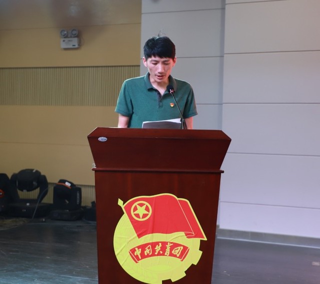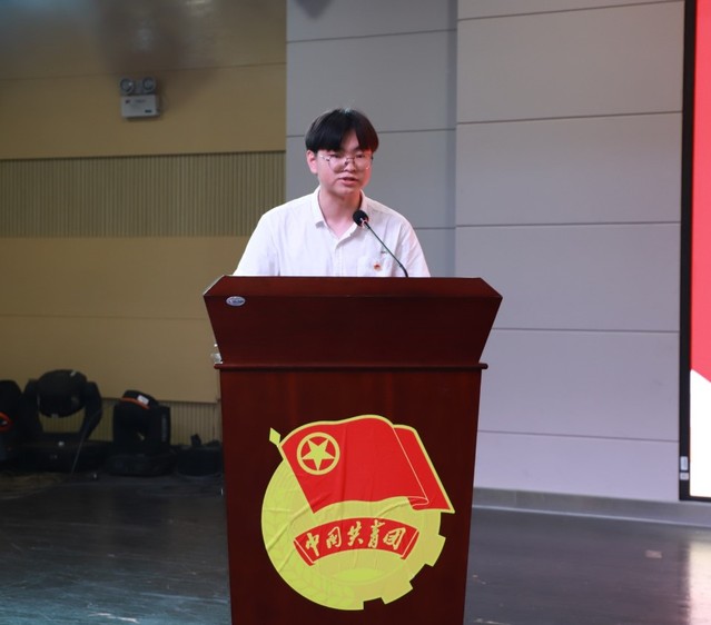 来自生科学院18级环境科学1班的学生代表刘嵩上台,做题为《百年奋进新征程,投身实践下基层》的发言。