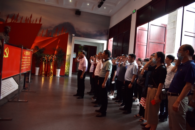 接着,研学班一行参观了吴家祠、毛泽东军事思想的伟大实践专题展览、毛泽东同志铜鼓化险专题馆、秋收起义纪念馆等地。通过讲解员的解说和近距离观看图片与实物,感受毛泽东同志不畏艰险领导和发动秋收起义的发展历程。在秋收起义纪念馆,面对鲜红的中国共产党党旗,李雪南带领大家重温入党誓词,全体人员怀着崇敬的心情庄严宣誓,声声坚定,铿锵有力。